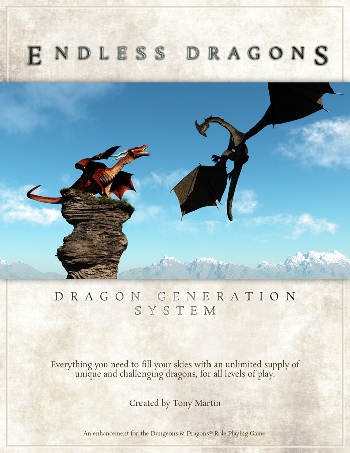 This is an add-on for Dungeons & Dragons 5th edition called Endless Dragons that allows you to create your own dragons. No longer are you limited to the handful of dragons that D&D provides (which all your players already know inside out).